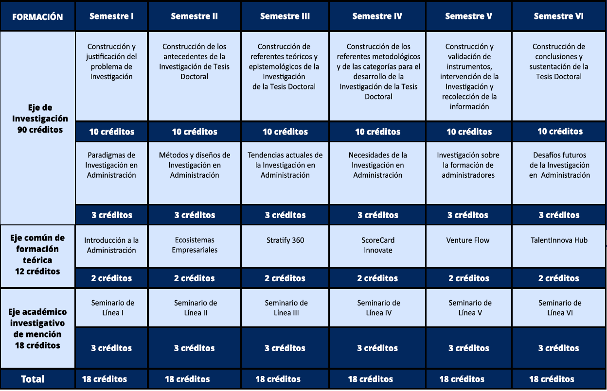 Plan de estudios del programa "Doctorado en Administración de Negocios"